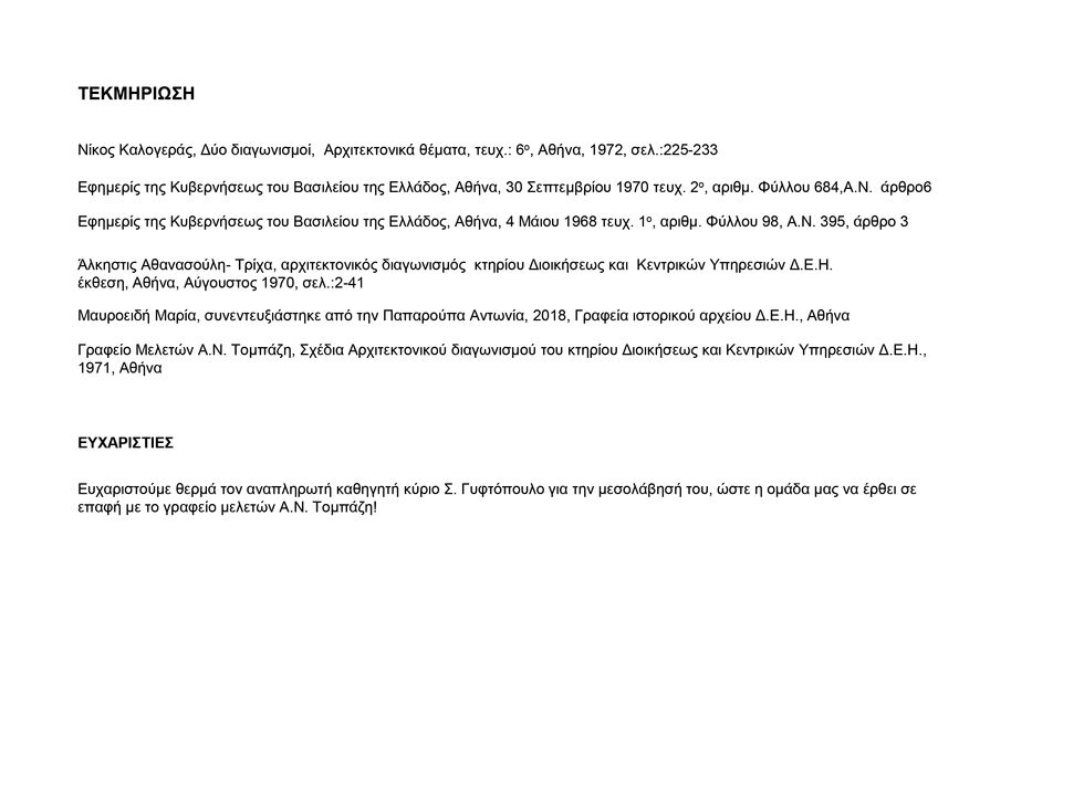 Ο διαγωνισμός που διενεργήθηκε ήταν κλειστός με 11 συνολικά συμμετέχοντες, ενώ η κριτική επιτροπή δεν περιελάμβανε κανένα μέλος με την ιδιότητα του αρχιτέκτονα. Το κτίριο μορφολογικά υπακούει στα πρότυπα της εποχής του, που δανείζονται στοιχεία του ευρωπαϊκού Μοντερνισμού, σε μια εποχή, που η ελληνική κυβέρνηση της δικτατορίας, πίεζε προς μια κατεύθυνση εκσυγχρονισμού και εντυπωσιασμού του λαού, ακόμη και διαμέσου της αρχιτεκτονικής.