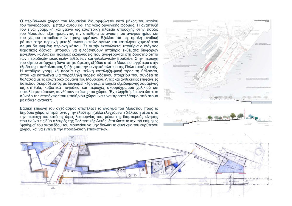 Η ανάπλαση της παράκτιας ζώνης του Λιμένα Πειραιά αποκαθιστά την αποκομμένη σχέση της πόλης με τη θάλασσα. Παραλαμβάνει χρήσεις αναψυχής και πολιτισμού με ποικίλες ποιότητες και αναφορές, αντανακλώντας στο πνεύμα του σχεδιασμού της, τη μετέωρη θέση της Ηετιώνιας ακτής μεταξύ στεριάς και νερού, αστικού και θαλασσινού τοπίου, τοπικού και υπερτοπικού χαρακτήρα. Οι ροές της πόλης έρχονται να συναντηθούν με τις ροές των θαλασσινών δρόμων που συρρέουν στο λιμάνι. Αστικά θραύσματα, πράσινο και όχθες είναι τα βασικά εργαλεία που συνθέτουν τη τυπολογία της νέας ακτής.